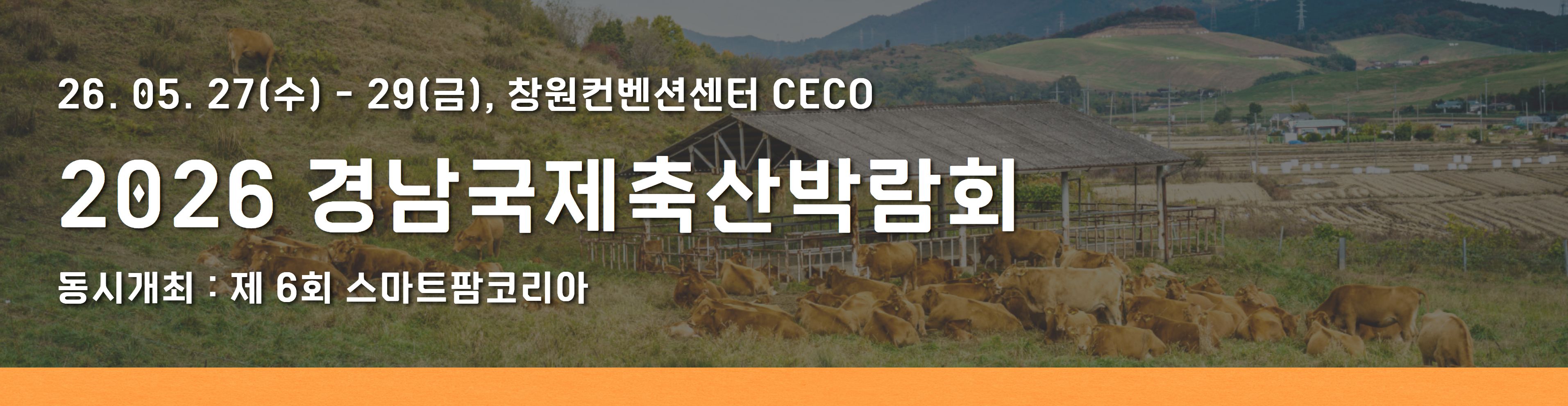 행사명 : 2026 경남국제축산박람회(GIELX) 일 시 : 2026년 05월 27일(수) ~ 29일(금) / 3일간 장 소 : 창원컨벤션센터 제 3전시장 프로그램 : 산업연계 세미나