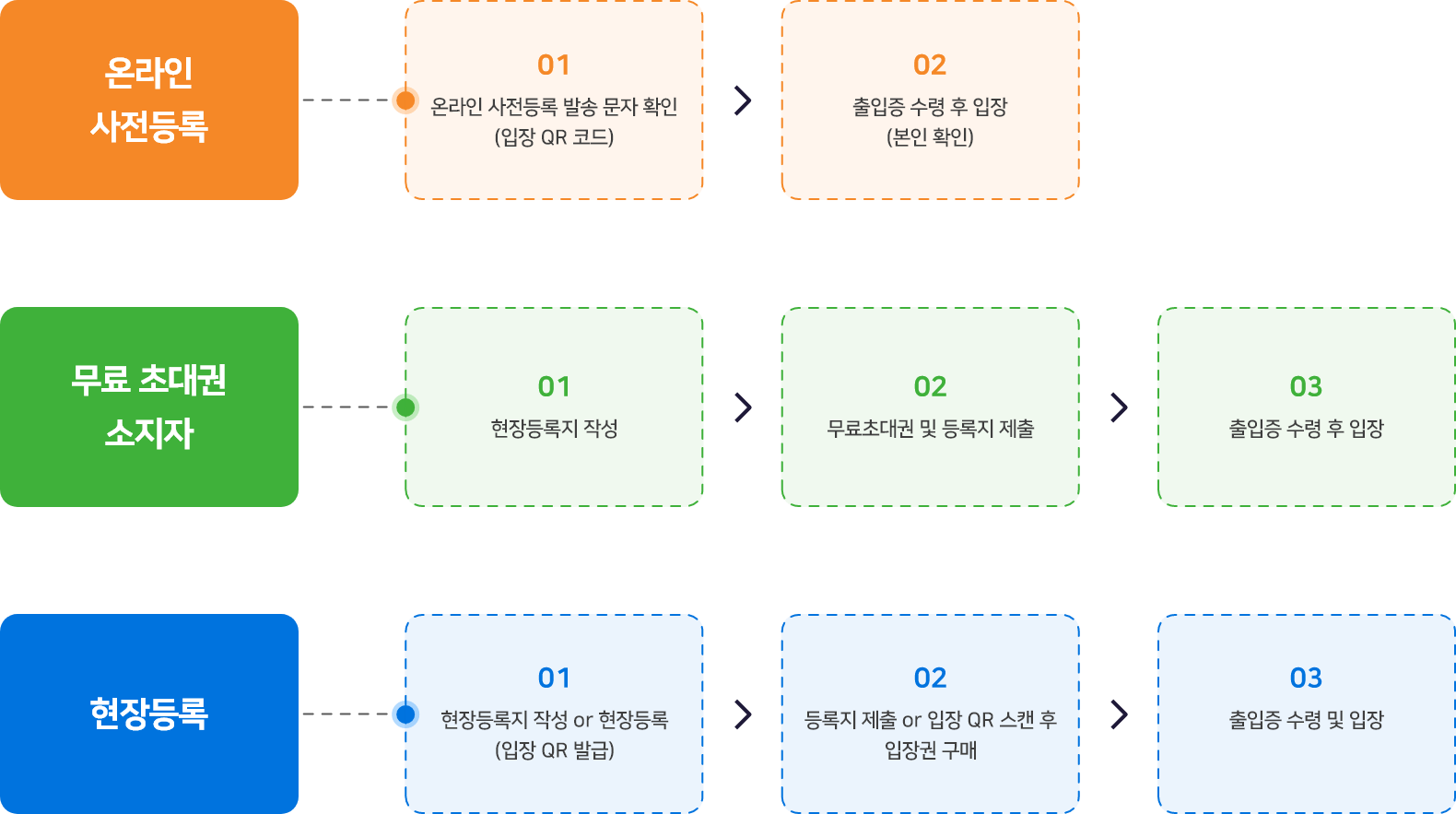 | 입장료 | 현장등록(일반관람객) 5,000원 (※ 미성년자,국가유공자,65세 이상 무료 입장 가능) ※ 온라인 사전등록 시 무료입장 (~5/24(일), 1인 1매) ※ 단체 관람 10인 미만 현장 등록 시 3,000원 |
